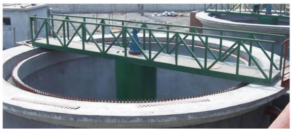 ?GZX型中心傳動(dòng)刮吸泥機(jī)廣泛用于給水工程中的沉淀池排泥,整機(jī)載荷都作用在工作橋中心。污水經(jīng)中心穩(wěn)流筒布水后流向周邊溢水槽,隨著流速的降低,污水中的懸浮物被分離而沉降于池底,由刮板將沉淀的污泥刮集到中心集泥槽中,靠靜水壓力將其從污泥管排出。